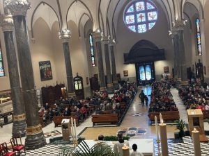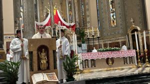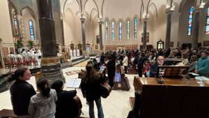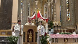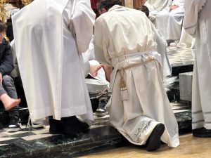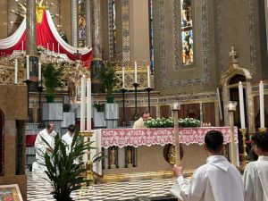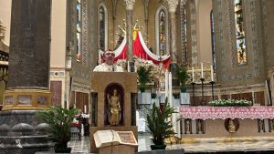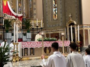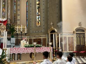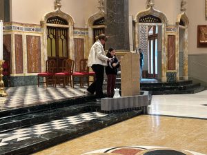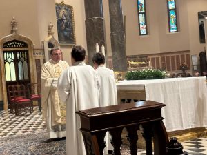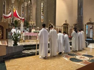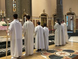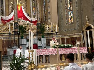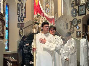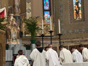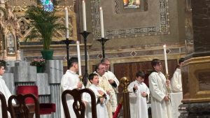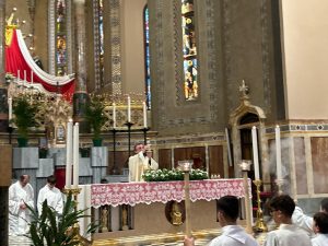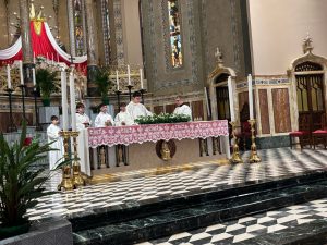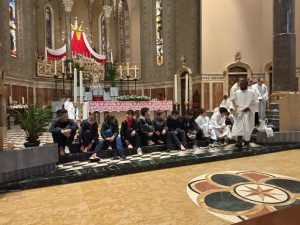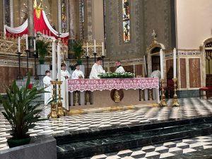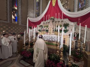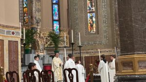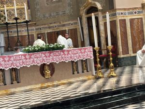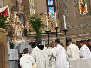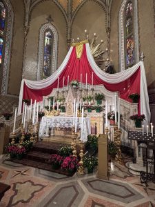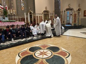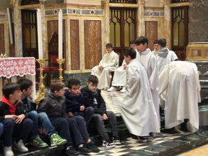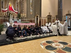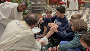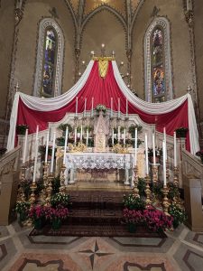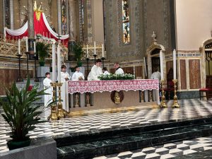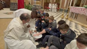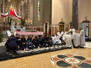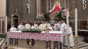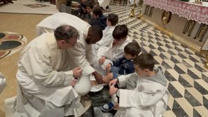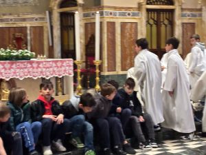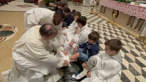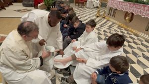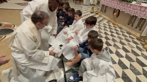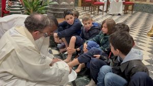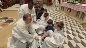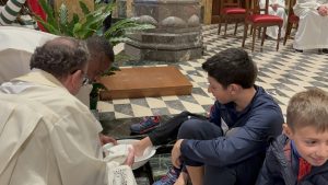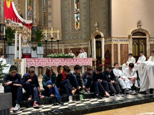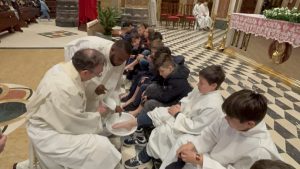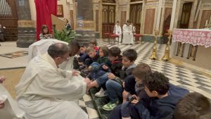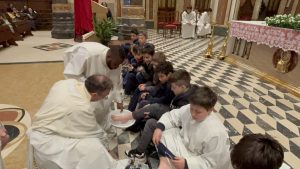 Il Giovedรฌ Santo si ricorda l’istituzione dell’Eucaristia e del ministero ordinato, come pure la consegna ai discepoli del comandamento dell’amore. Alle ore 18 รจ stata celebrata dal rettore don Alessandro D’Acunto la Santa Messa in Coena Domini nella quale si รจ vissuto il rito della lavanda dei piedi ad alcuni ragazzi della catechesi. Celebrazione solenne e molto partecipata nel canto e nella preghiera. Al termine la solenne processione con il santissimo Sacramento verso il Tempietto dove รจ stato preparato l’Altare della reposizione ha concluso la celebrazione. Alla sera un gruppo di famiglie con la presenza di tutti i ministranti si sono ritrovati per la tradizionale visita agli Altari della Reposizione della Cittร .