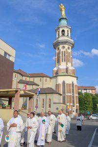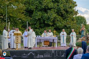 Alle ore 21, Mons. Migliavacca celebrando la messa vespertina nella XXI° domenica “per annum” ha esortato i fedeli a sentirsi chiamati a rinnovare la sequela del Signore. “Parlandoci delle condizioni per seguirlo, Gesù parla della sua via, della sua strada cioè la via stretta, via che lo porta al Calvario ed è il suo amare. Siamo chiamati a vivere queste condizioni che diventano la sequela del Signore con un invito alla salvezza che è per tutti e la porta stretta è la strada di Gesù, la via di Gesù. In modo ancora più chiaro, la porta stretta è indicata nella finale del brano: “vi sono ultimi che saranno primi e i primi che saranno ultimi” e pertanto è stare tra gli ultimi, vivere da ultimi nell’amare e c’è sempre da imparare. La Lettera agli Ebrei ci parla della correzione fraterna che diventa esperienza di misericordia e la meta è quella Gerusalemme nuova di cui ci parla Isaia”. Presente il vicariato di Arquata e Serravalle Scrivia, con don Luca Gatti co-parroco di Serravalle Scrivia. Ad animare la liturgia la Corale di Isola D’Asti diretta dal M° Grazia Gianotti.