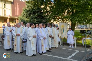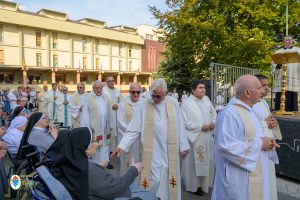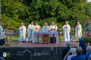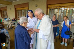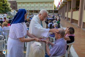 Alle ore 18 presso il cortile del Centro Mater Dei si è celebrata la tradizionale “Messa del Malato”, quest’anno particolarmente è stata Messa giubilare per i malati, presieduta dal vescovo emerito di Orvieto-Todi Mons. Giovanni Scanavino. Presenti gli anziani del Centro Mater Dei, i bambini del Piccolo Cottolengo, le suore della Casa Madre, l’OFTAL e un bel gruppo di fedeli. Alla concelebrazione hanno preso parte anche i sacerdoti orionini che sono radunati presso la Casa Paterno di Tortona per prepararsi a celebrare il loro giubilei di vita religiosa. È stato amministrato il sacramento degli infermi a chi lo ha desiderato. È sempre un bel momento di carità che riempie ancor di più la novena con la preghiera verso coloro che soffrono nell’anima e nel corpo.