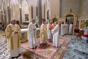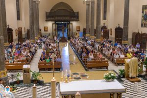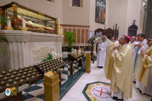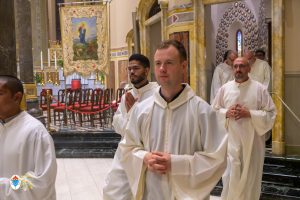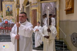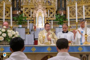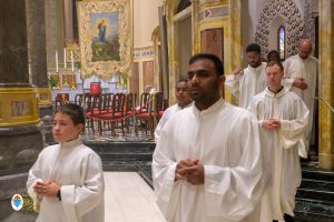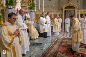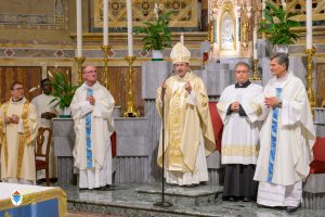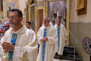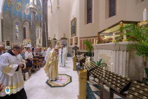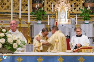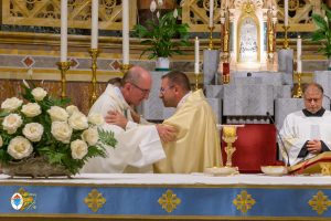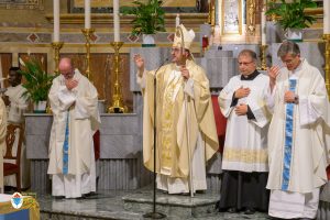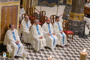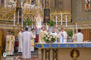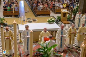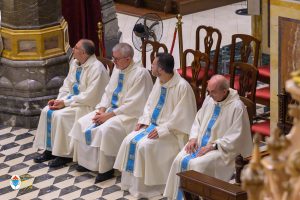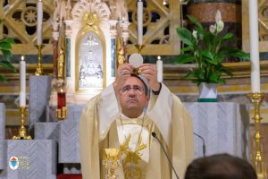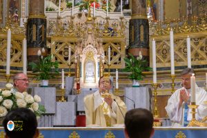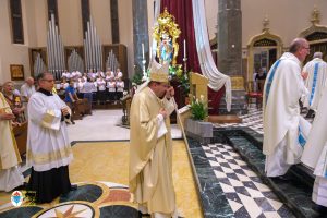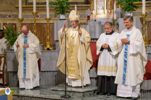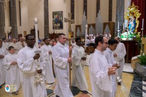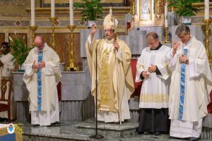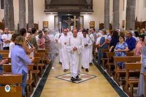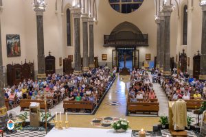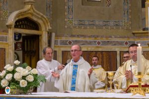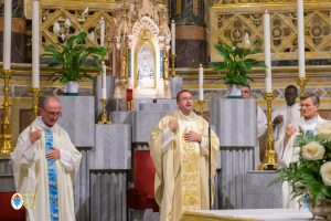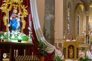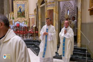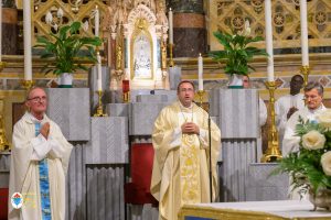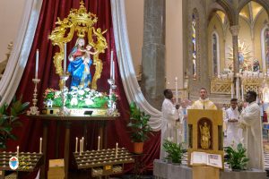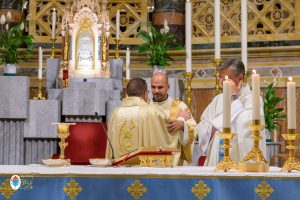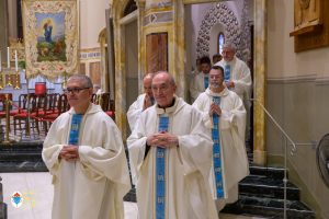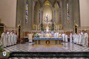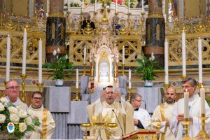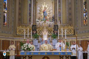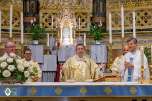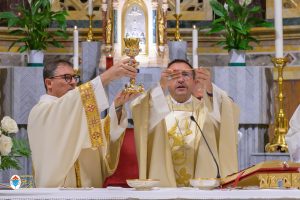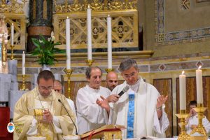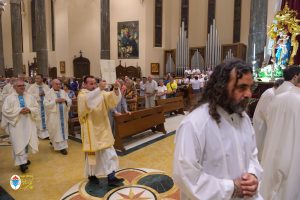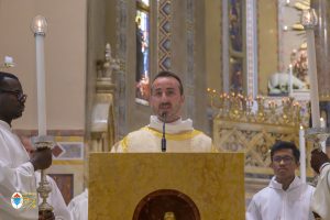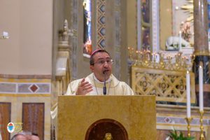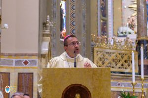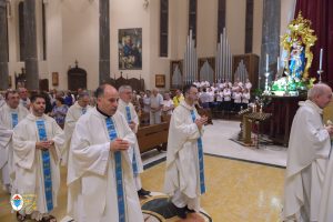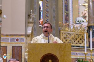 Settimo giorno della novena. In questa giornata la riflessione si è incentrata su Maria “sostegno e difesa della nostra fede”. Alle ore 17 don Aurelio evidenzia il passo evangelico di Maria sotto la Croce e ricorda come Ella ha allargato il suo cuore. Lei, la Madre di Gesù, diventa la Madre della Chiesa. Alle ore 21 Mons. Migliavacca evidenzia nella riflessione come la parola severa di Gesù verso gli scribi e farisei ci porta a guardare all’importanza della testimonianza e a testimoniare con autenticità il Vangelo. “Il rischio e lo scandalo, dice il vescovo, è di dare come cristiani una contro testimonianza ed allora siamo chiamati a verificare nella nostra vita se davvero parliamo di Vangelo e il testo dei Tessalonicesi ci porta allora a riflettere sulle fatiche del testimone, dell’apostolo consegnandoci un invito a diventare autentici testimoni portatori di Vangelo nel mondo di oggi”. Presente il vicariato di Novi Ligure, con i sacerdoti don Costantino Marostegan parroco di Pozzolo Formigaro e don Fabrizio Pessina parroco della Pieve di Novi Ligure e della Merella. Ad animare la celebrazione la corale San Giovanni Bosco di Torricella Verzate e Mornico Losana diretta dal M° Matteo Stella all’organo Mattia Pruzzi. Al termine della celebrazione, prima della benedizione, il vescovo a nome di tutti i presenti a rivolto gli auguri di buon onomastico al nostro rettore don Alessandro D’Acunto.