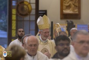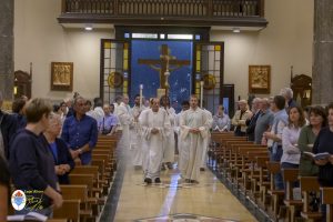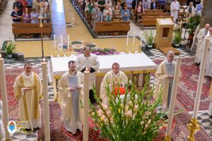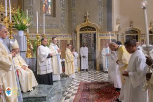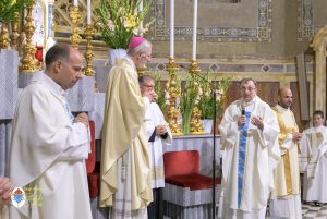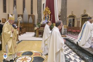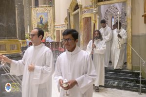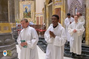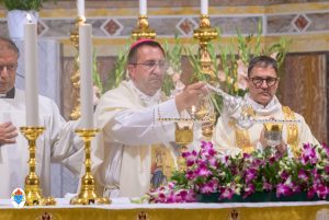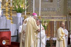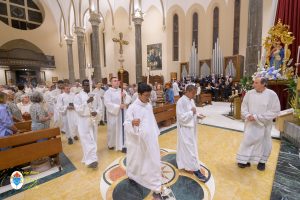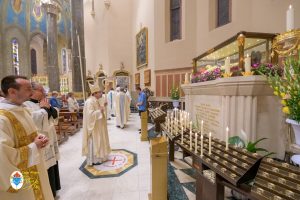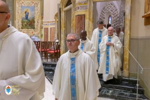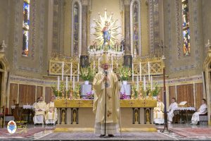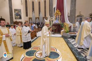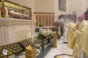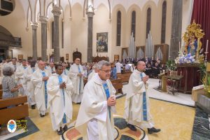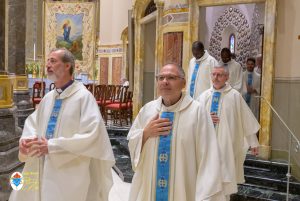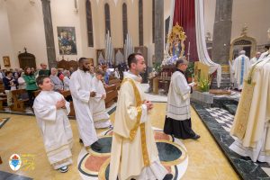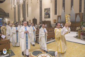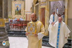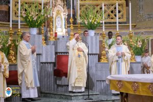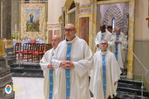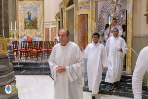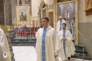 Siamo ormai giorni all’ultimo giorno della novena e già alla sera di questo giorno risuona il canto del Magnificat. La Chiesa in questa giornata fa memoria del grande Padre Sant’Agostino che ha fatto dell’assemblea eucaristica il momento centrale della vita della sua comunità. Le sue numerosissime omelie mostrano come sapeva adattare la Parola di Dio alla mentalità del suo ambiente umano. Alle ore 17 Don Aurelio che conclude così la sua predicazione, sottolinea il cantico per eccellenza della Vergine: il Magnificat. “Maria, ha concluso il predicatore, donna che ha dato al mondo il Figlio di Dio è il modello di vera sequela, è il modello della fede cristiana”. Alle ore 21 Mons. Migliavacca in questa celebrazione vigiliare conclude la sua predicazione ponendo al centro della sua riflessione Maria arca dell’alleanza. “Ella, dice il vescovo, è il segno della presenza e dell’opera di Dio e così nella prima lettura nel libro della Sapienza che ci presenta l’opera e la presenza di Dio nel giorno della creazione. La sapienza è proprio questo regalare l’amore, la presenza di Dio all’origine e per sempre nella vita ed un’arca da accogliere. L’Apocalisse ci dice che la presenza di Dio è una promessa, è qualcosa che ci sta davanti che c’è promesso, che dobbiamo attendere a cui dobbiamo aprirci ma che certo non mancherà e questo alimenta la nostra speranza. Maria ci aiuta a vedere il farsi avanti di questa promessa. Il Vangelo ci racconta che Maria è Colei che porta Gesù. Se ne accorge Elisabetta sentendo che il bambino esulta nel grembo perché si accorge che Maria porta Gesù il Figlio di Dio e il dono è quello della gioia. Allora come ‘beata’, viene definita Maria, possiamo dirci anche a noi ‘beati’, perché chiamati ad accogliere la visita del Signore”. La celebrazione è stata animata dalla Corale del nostro Santuario diretta dal M° Enrico Vercesi ed all’organo il M° Alberto Do. Alle ore 23 mons. Marini ha presieduto la Messa “veglia degli uomini e dei giovani” ed al termine del cortile del Santuario tutti insieme come da tradizione ideata dal Fondatore hanno gustato il “Caffè di Don Orione”.