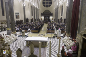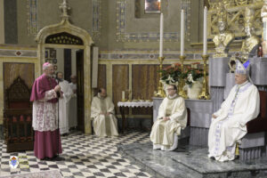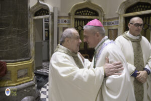Accanto al vescovo Viola, i suoi due compagni di ordinazione sacerdotale ed amici, P. Sergio e Don Andrea che non sono voluti mancare a questo momento di grazie e di lode al Signore. All’inizio della celebrazione il nostro vescovo mons. Guido Marini ha rivolto parole di affetto e di gratitudine verso il confratello nell’episcopato, soprattutto per aver accettato l’invito a celebrare insieme questo anniversario proprio in uno dei luoghi a lui tanto cari quale il Santuario della Guardia e anche un grazie dal profondo del cuore per quanto ha seminato in questa “nostra” diocesi. La commozione di mons. Viola non è rimasta indifferente a nessuno, per tutta l’intera celebrazione, segno che il legame è ancora davvero forte e rimane sempre unito dalla preghiera. Nell’omelia, in questa solennità dell’Immacolata Concezione, ha iniziato con un’intercessione al Signore: quella di poter avere in noi “almeno una scintilla dell’amore che il cuore di don Orione ha avuto per la tua Vergine Madre, per poterla contemplare Immacolata”. “Non c’è nulla di più stabile dell’amore di Dio, ha sottolineato Viola, in qualunque situazione ci troviamo e noi siamo stati pensati e creati da Lui che desidera la comunione con noi”. Una richiesta ed invocazione è stata elevata anche per il suo anniversario episcopale ovvero “poter appartenergli totalmente in una consegna totale nell’amore di Dio”. Concludendo la riflessione ha chiesto al Signore per tutti, in particolare per la Chiesa di Tortona di “poter assomigliare alla Vergine come Chiesa: pronti, obbedienti al disegno di amore ed essere nel mondo per dire il Suo amore in ogni contesto di vita. Ciascuno di noi possa essere pronto a ripetere ‘eccomi’ in quella consegna a Te che è il segreto della nostra gioia”. Al termine don Aurelio Fusi a nome della Congregazione orionina ha rivolto un saluto di grazie per tutto l’affetto e il legame nato dieci anni or sono e che oggi è sempre vivo nel cuore. Mons. Viola è poi salito al tempietto ai piedi della statua della Madonna della Guardia ove ha rivolto il suo grazie, rotto dalla tanta commozione, ed ha assicurato il suo ricordo “vivo” nella preghiera. La Benedizione finale e i saluti personali dei presenti al vescovo Viola hanno concluso questa celebrazione solenne e nello stesso tempo di vera “famiglia”.