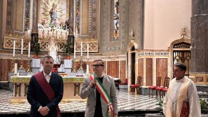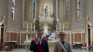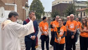 Dopo il saluto di accoglienza ed una breve spiegazione del Santuario da parte del rettore don Luigino Brolese, i saluti istituzionali da parte delle due amministrazioni comunali, nelle persone del presidente del consiglio comunale di Tortona Giovanni Ferrari Cuniolo e dal vice sindaco di Seregno William Viganó, il gruppo si é portato sul sagrato del Santuario per l’accensione e la benedizione della fiaccola che porteranno per le strade fino ad arrivare alla loro Parrocchia per celebrare questo importante anniversario.