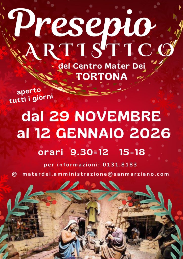 Il Centro Mater Dei di Tortona annuncia l’apertura del tradizionale Presepio Artistico, un appuntamento molto atteso nel periodo natalizio, che ogni anno richiama numerosi visitatori per la cura delle scenografie e l’atmosfera suggestiva. Il presepio sarà aperto tutti i giorni dal 29 novembre 2025 al 12 gennaio 2026, con i seguenti orari: 9.30 – 12.00 e 15.00 – 18.00. Il presepe, realizzato con grande attenzione ai dettagli, offre un percorso immersivo che valorizza la tradizione e permette a grandi e piccoli di vivere l’incanto del Natale. Per ulteriori informazioni e per i gruppi è possibile contattare il numero 0131.8183 o scrivere all’indirizzo e-mail [email protected].