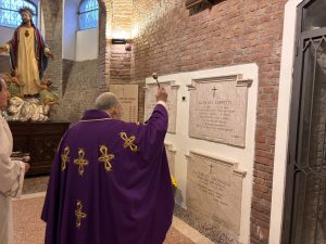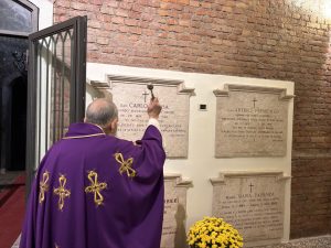 Oggi 2 novembre 2025, oltre alla celebrazioni partecipate da tanti fedeli in santuario, nella Messa parrocchiale, in Cripta, presieduta da Fra Luigi Fiordaliso, sono stati ricordati in modo particolare i defunti della nostra parrocchia. Al termine ci si recati davanti alle tombe dei sacerdoti e delle suore sepolte in questo luogo.