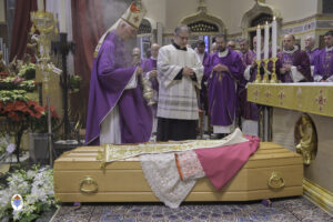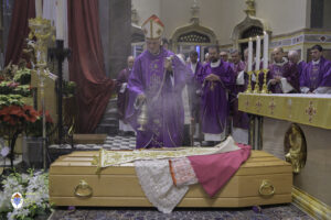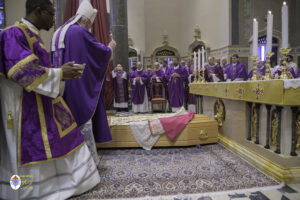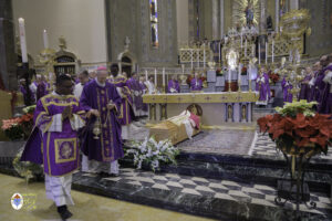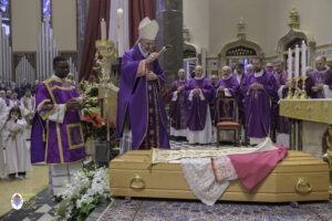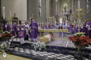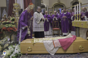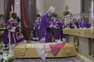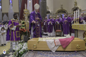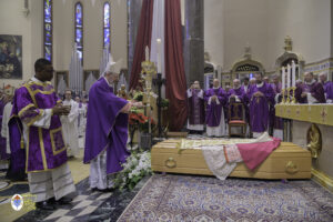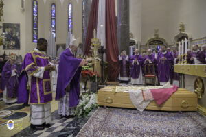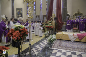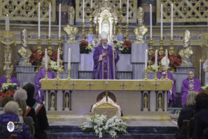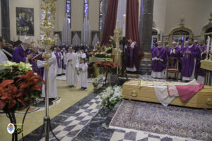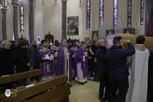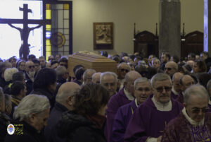 Venerdì 3 gennaio il “suo” Santuario lo ha accolto con grande solennità e nello stesso tempo con i cuori dei presenti rotti dalla commozione. Alla presenza di circa un centinaio di sacerdoti (orionini e diocesani) insieme ai vescovi D’Ercole e Di Mauro, le consorelle, i suoi famigliari ed amici, i suoi collaboratori, le autorità civili e militari e una moltitudine di fedeli: la sua gente, i suoi parrocchiani, i suoi ragazzi, la sua corale.