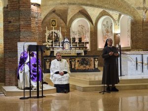 Domenica 21 dicembre 2025, durante la Santa Messa delle ore 10:30, la comunità parrocchiale di San Bernardino ha vissuto due momenti intensi di gratitudine e memoria. Nel corso della celebrazione è stata benedetta una targa in memoria di Don Renzo Vanoi, Parroco dal 2017 al 2024. Alla presenza delle sorelle di Don Renzo, la targa, voluta con affetto dai ragazzi dell’oratorio, verrà collocata in una saletta a lui dedicata, come segno di una memoria viva e riconoscente. È stato un momento di profondo raccoglimento nel ricordo di questo indimenticabile sacerdote che, oltre a essere stato Rettore del Santuario, ha dedicato il suo ministero con passione ai ragazzi e ai giovani. L’intera comunità conserva nel cuore un ricordo prezioso del suo servizio, esempio di fede e amore pastorale. Nella stessa celebrazione, la comunità ha salutato con affetto Suor Carla delle Piccole Suore Missionarie della Carità, che dal prossimo gennaio 2026 é destinate a prestare il proprio servizio in un’altra comunità. Al termine della Messa, Suor Carla ha rivolto un saluto e un ringraziamento particolare ai ragazzi dell’oratorio, alle famiglie e a tutta la comunità, con la quale dal 2021 ha condiviso un cammino di collaborazione per il bene delle future generazioni. La mattinata è proseguita in oratorio con un momento di fraternità, la consegna di alcuni regali a Suor Carla e un rinfresco. Inoltre, i ragazzi dell’oratorio hanno allestito dei banchetti all’esterno del Santuario per la vendita di torte, il cui ricavato servirà a sostenere le attività dell’oratorio. L’iniziativa ha ricevuto una bella e generosa risposta da parte dei parrocchiani.