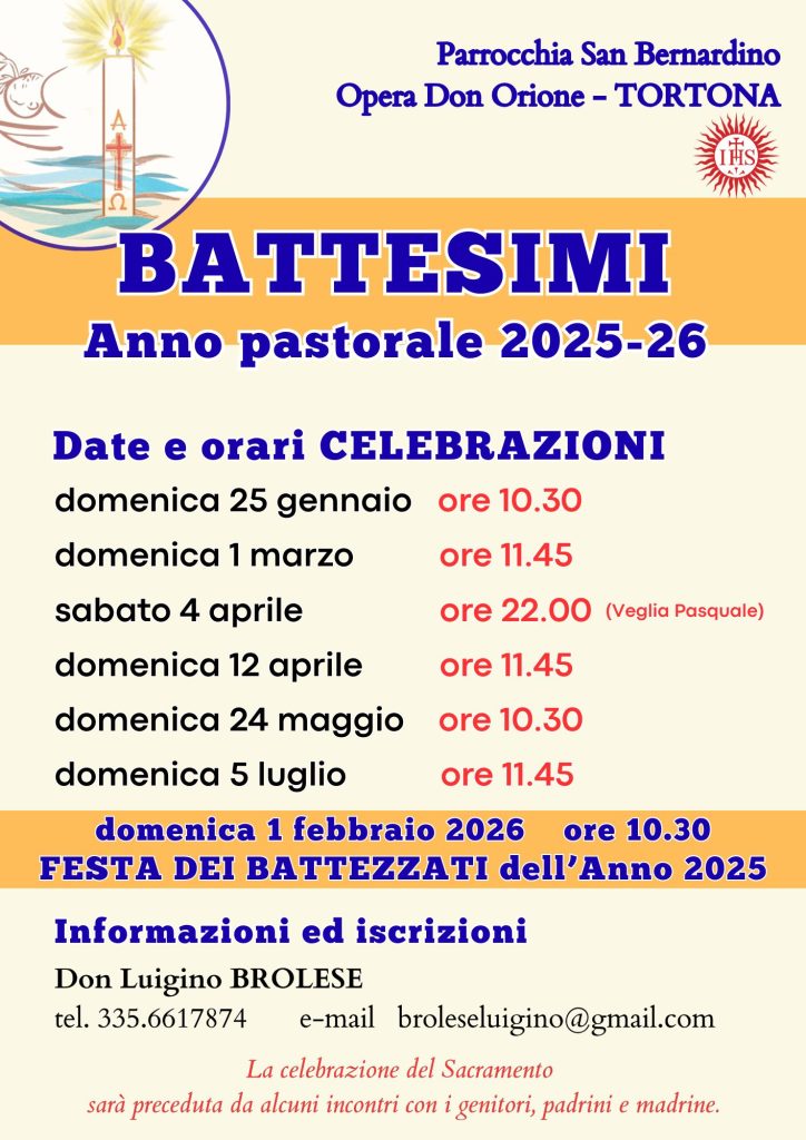 Nella locandina sotto riportata sono indicate le date e tutte le informazioni sulla preparazione e la celebrazione dei Battesimi per l’Anno Pastorale 2025-26.